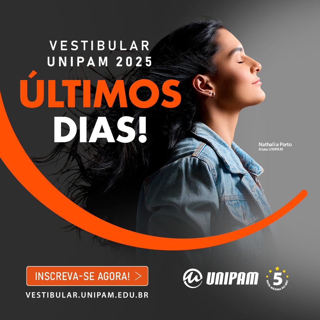 Estes são os últimos dias para se inscrever no Vestibular do Centro Universitário de Patos de Minas (UNIPAM). O processo seletivo será realizado no dia 1º de dezembro (domingo), das 13h às 18h, no campus da instituição.