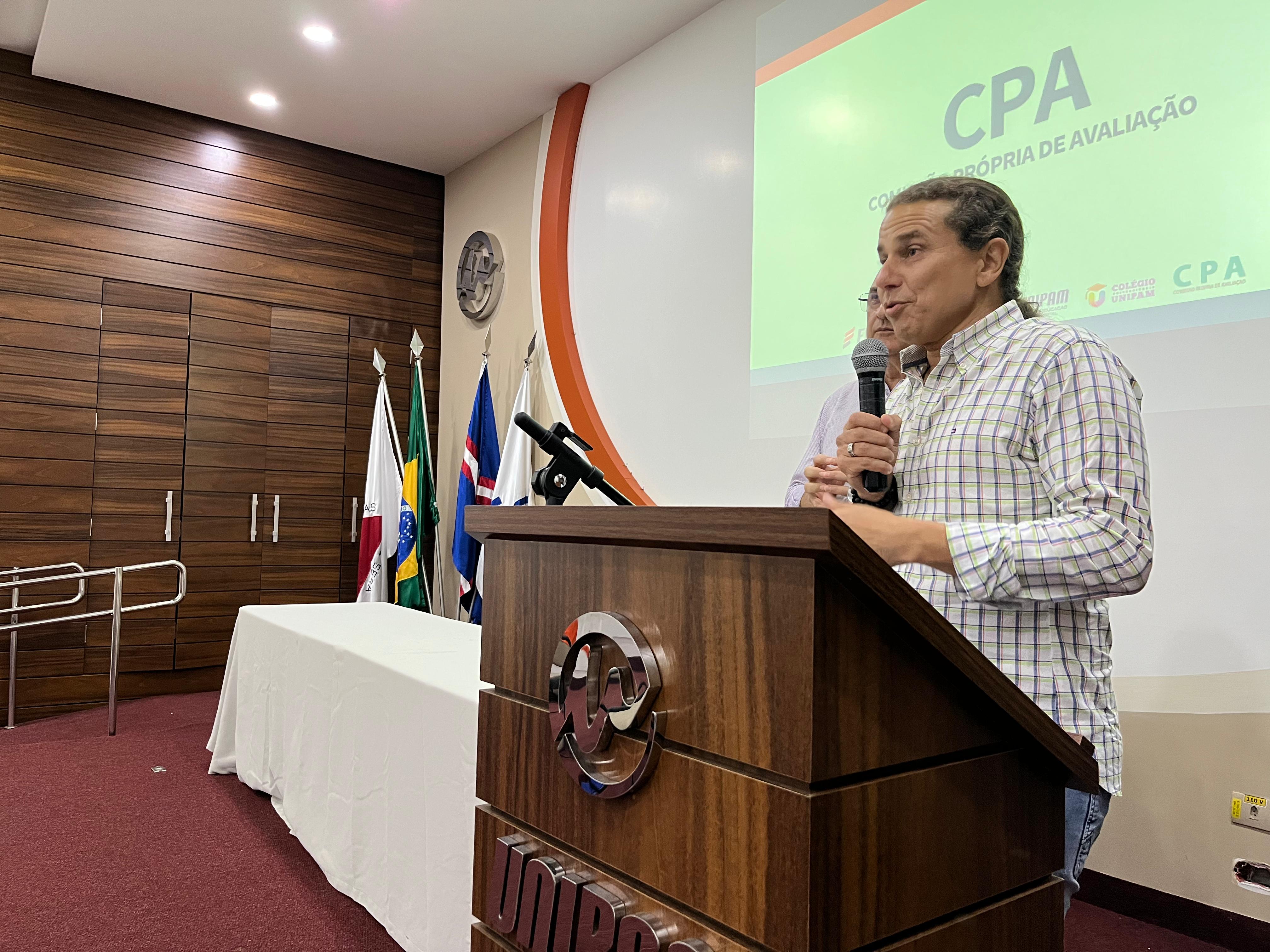 Posteriormente, o presidente da Comissão Própria de Avaliação (CPA), professor Me. Ronaldo Pereira Caixeta, compartilhou a metodologia da pesquisa e os prazos para preenchimento. Para encerrar, a psicóloga em recursos humanos, Sra. Roberta Eulálio Franco, destacou a imparcialidade e o sigilo das informações coletadas na pesquisa.