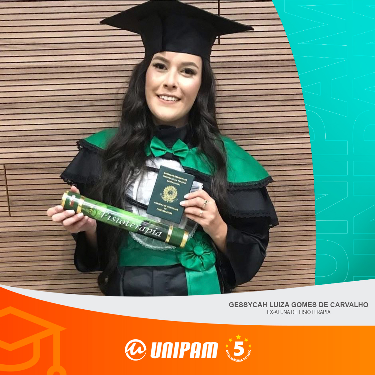 A egressa concluiu o curso de Fisioterapia em 2021.