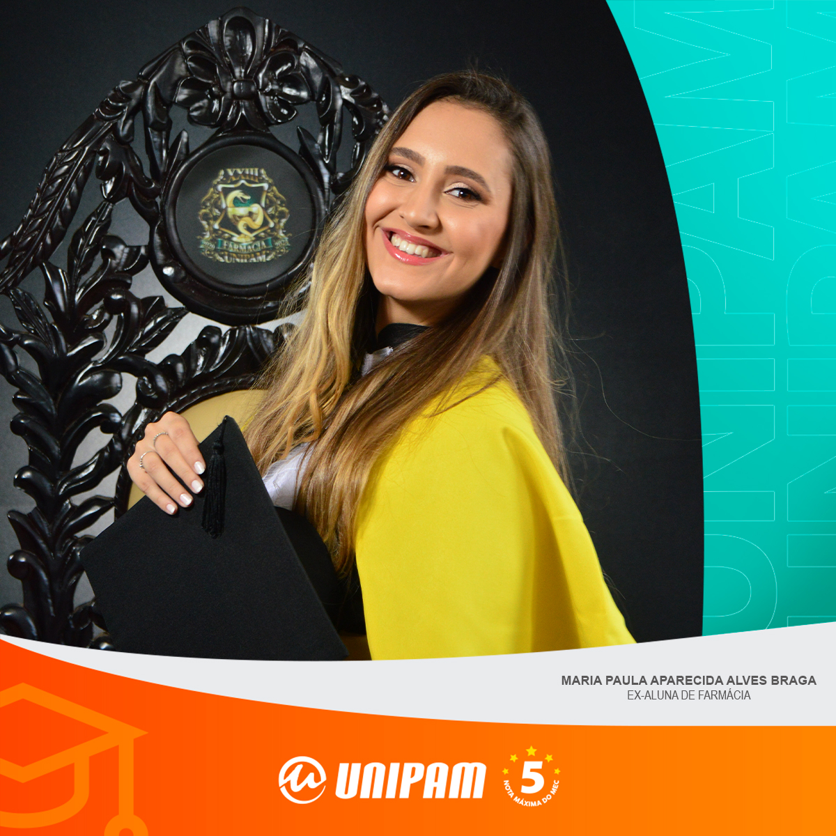A egressa concluiu, neste ano, o curso de Farmácia.