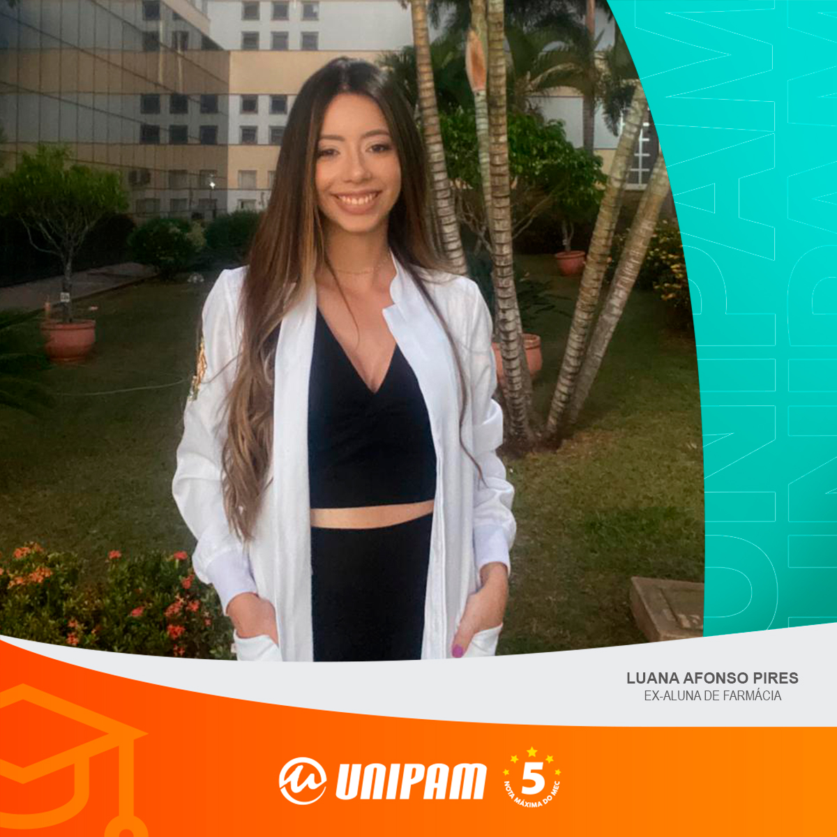 Luana Afonso Pires, ex-aluna do curso de Farmácia do Centro Universitário de Patos de Minas (UNIPAM), foi aprovada, no dia 30 de janeiro (quinta-feira), em 1º lugar, no Programa de Residência Multiprofissional em Saúde - Farmácia, do Hospital Regional Antônio Dias (HRAD).