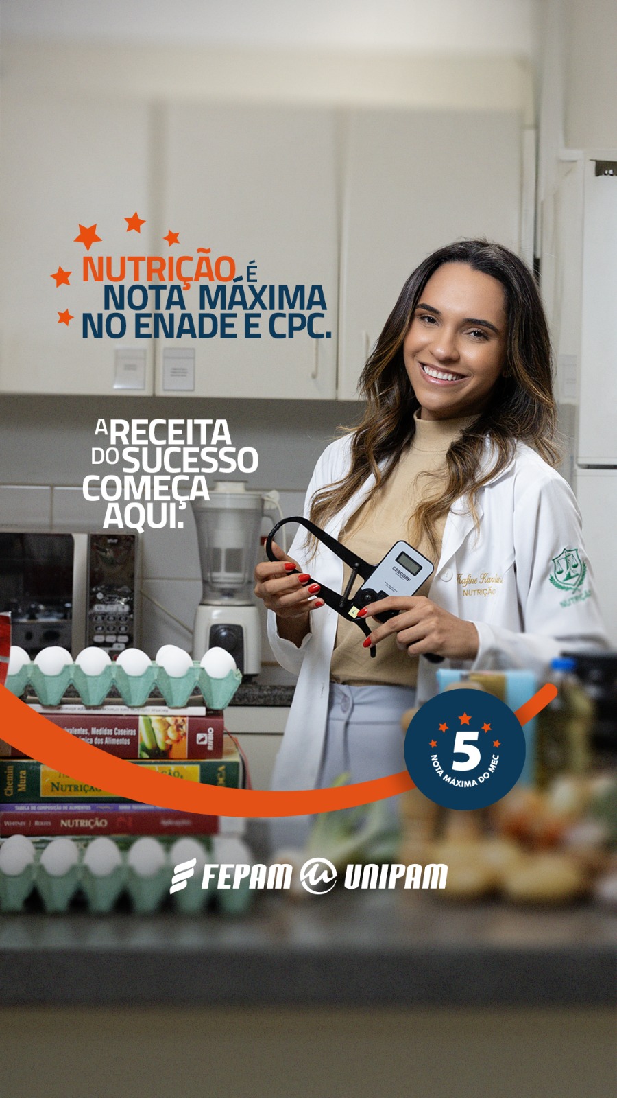 O curso de Nutrição do Centro Universitário de Patos de Minas (UNIPAM) recebeu a nota máxima, conceito 5, no Exame Nacional de Desempenho dos Estudantes (ENADE) e no Conceito Preliminar de Curso (CPC). O resultado foi divulgado no dia 11 de abril (sexta-feira) e refere-se ao ano de 2023.