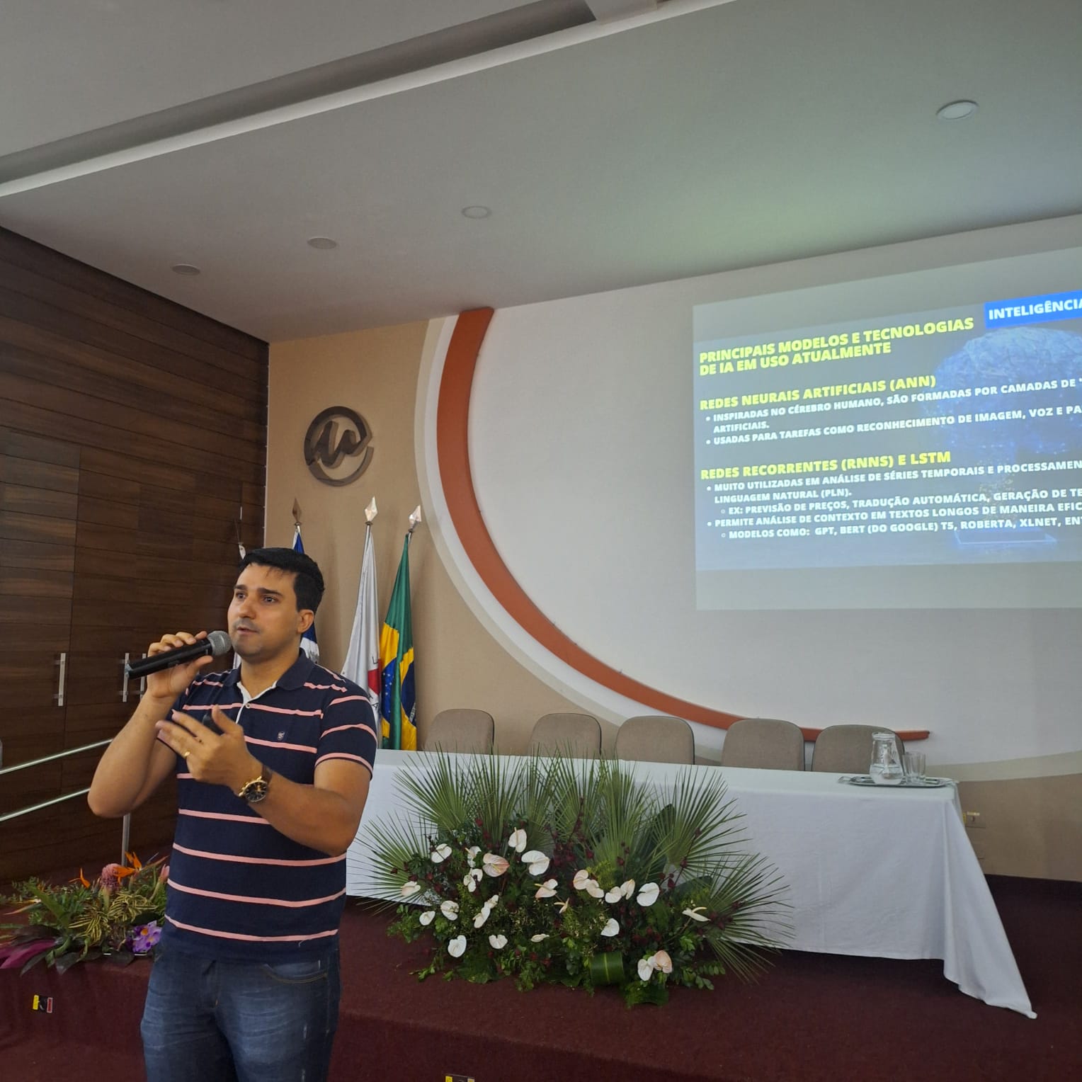 Na oportunidade, o professor proferiu sobre o tema “Inteligência Artificial”. Durante a palestra, ele apresentou reflexões sobre o assunto, explicou sobre os impactos na aprendizagem e destacou ferramentas de IA que podem auxiliar no dia a dia da gestão escolar e no processo de ensino-aprendizagem.