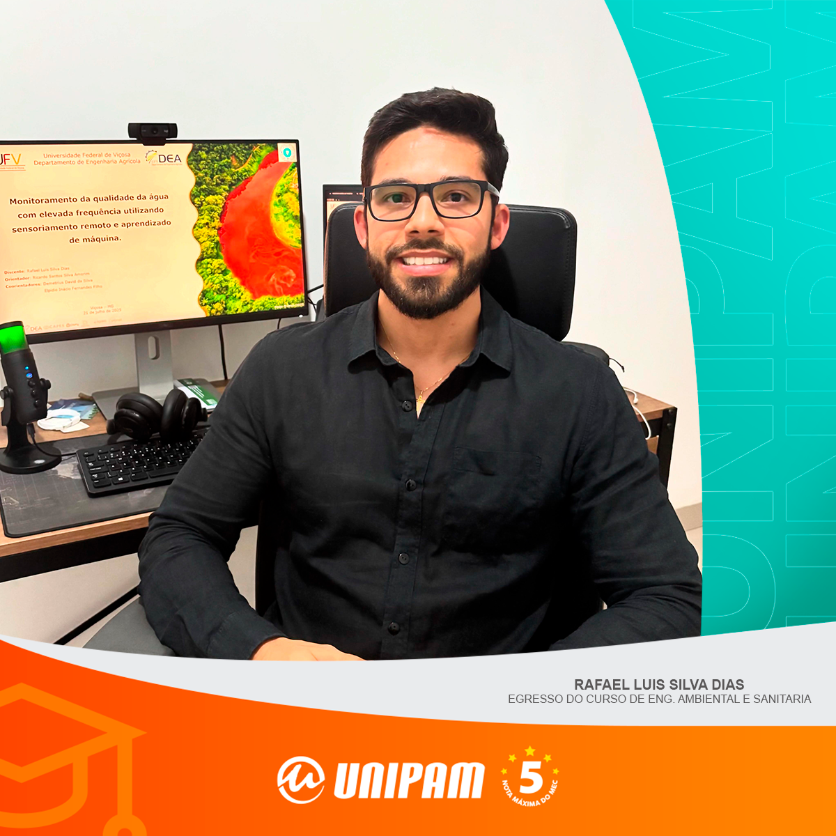 O egresso do curso de Engenharia Ambiental e Sanitária do Centro Universitário de Patos de Minas (UNIPAM), Rafael Luís Silva Dias, concluiu o doutorado em Engenharia Agrícola pela Universidade Federal de Viçosa (UFV), uma das mais renomadas instituições do país na área.