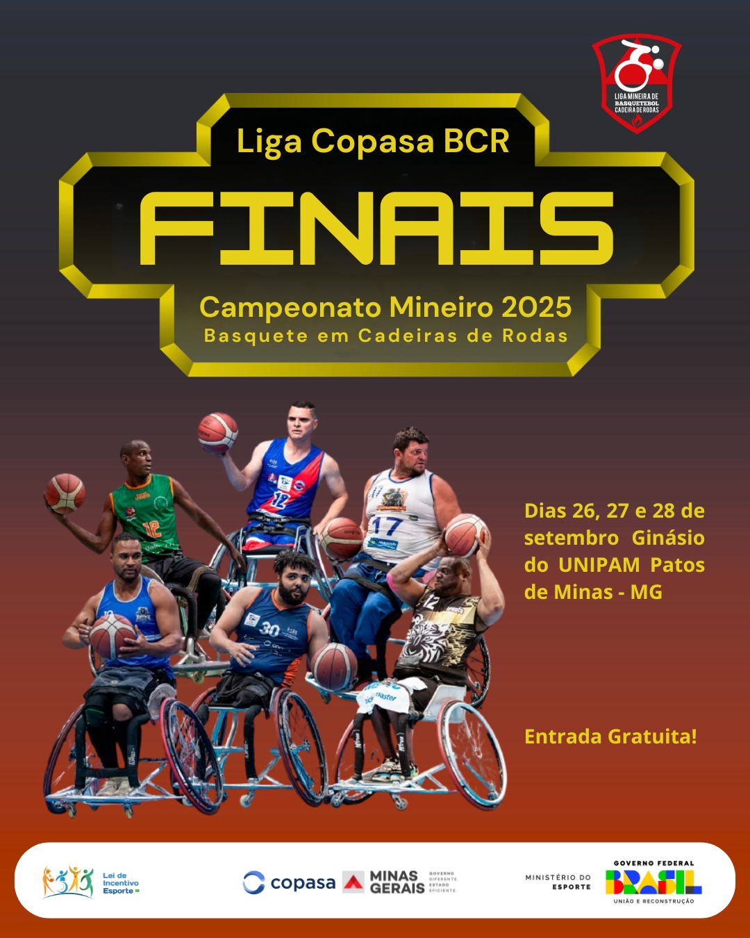 A Liga Mineira de Basquete em Cadeiras de Rodas (LMBC) realiza, entre os dias 26 e 28 de setembro, a etapa final da Liga Copasa BCR – Campeonato Mineiro de Basquete em Cadeira de Rodas, que definirá o grande campeão da temporada. Os jogos serão disputados no Ginásio do UNIPAM, localizados no bloco L.