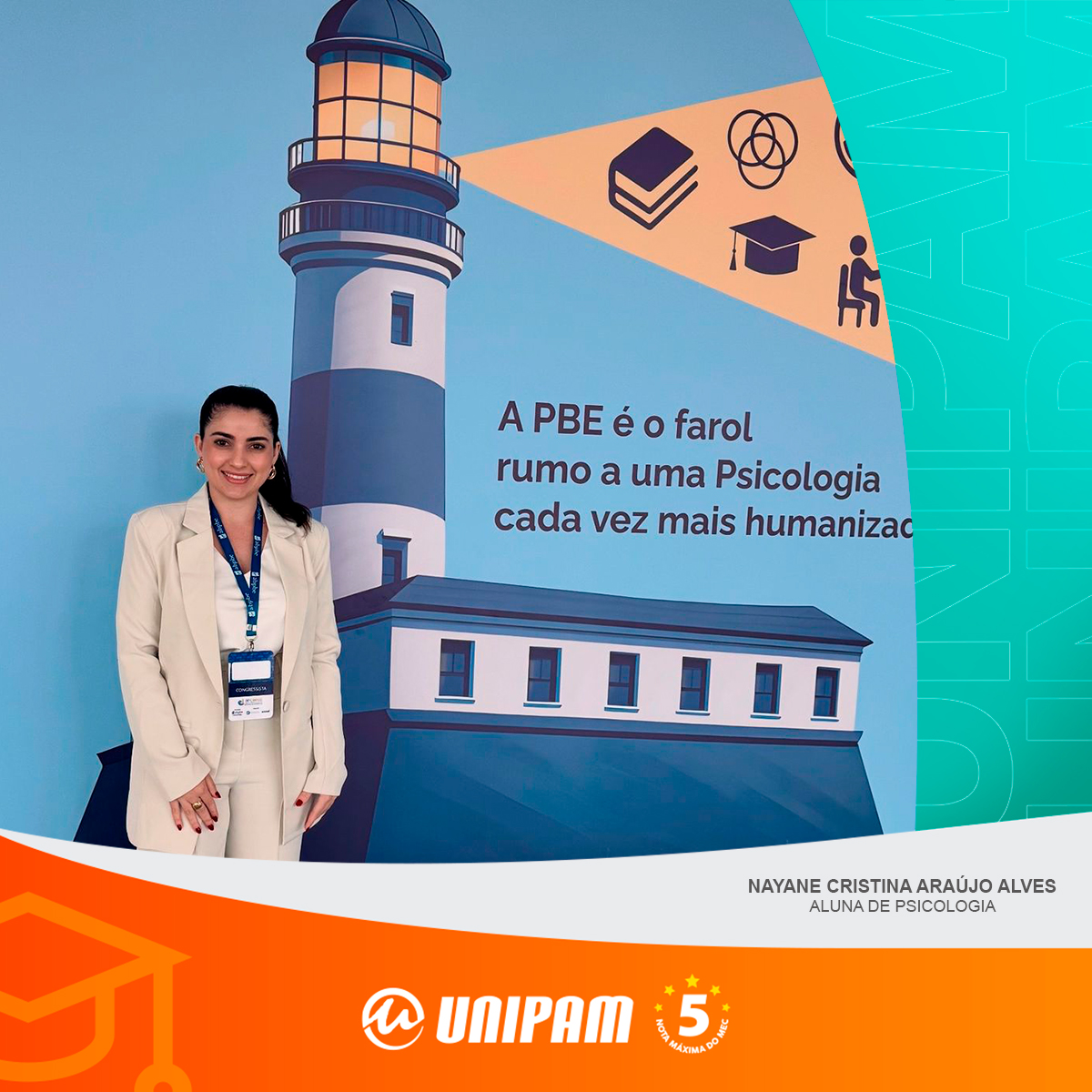 A aluna Nayane Cristina Araújo Alves, do 10º período do curso de Psicologia do Centro Universitário de Patos de Minas (UNIPAM), participou, de 16 a 18 de agosto, do IV Congresso Brasileiro de Psicologia Baseada em Evidências, realizado em Salvador (BA).