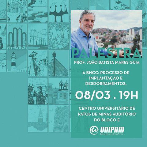 A coordenação dos cursos de História e Pedagogia do Centro Universitário de Patos de Minas (UNIPAM) promoverá no dia 8 de março, às 19h, no auditório do Bloco E, uma palestra sobre a Base Nacional Comum Curricular (BNCC), intitulada “A BNCC: processo de implantação e desdobramentos”.