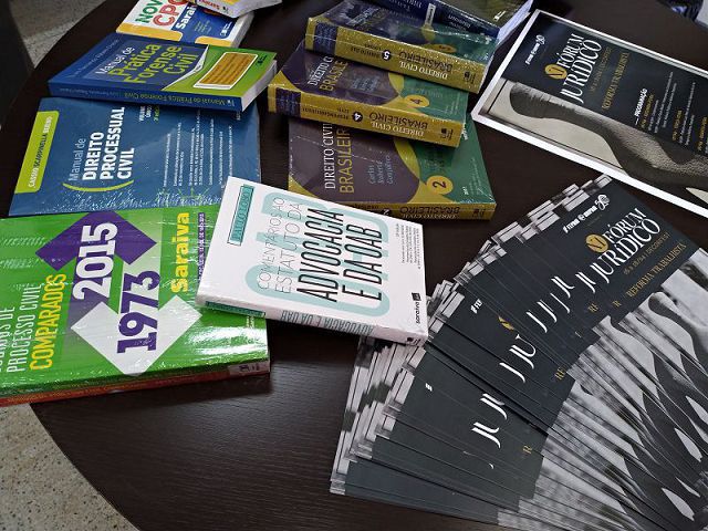 Dentre as obras doadas estão a coleção completa de Direito Civil, Direito Penal, Processo Civil, Processo Penal, Previdenciário, Estatuto da OAB, Direito do Trabalho e Processo do Trabalho.