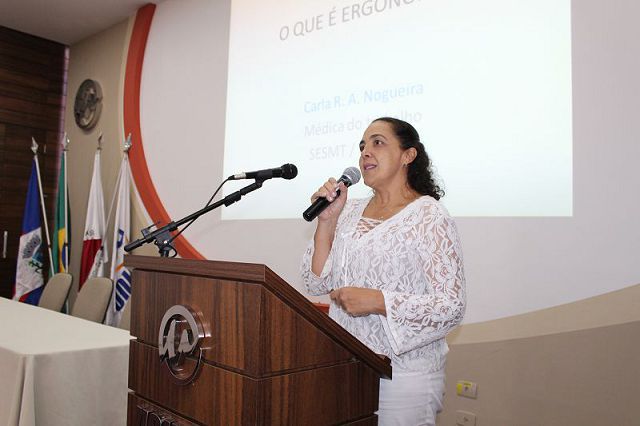 Durante a palestra, a médica ressaltou que a ergonomia não engloba apenas ações realizadas no ambiente de trabalho, mas também, aquelas realizadas no dia a dia. Ela abordou ainda os tipos de ergonomia existentes (física, cognitiva e organizacional), as doenças comuns responsáveis por afastamentos, como a LER/ Dort e ações que evitam lesões, como o uso de produtos adequados e a prática da ginástica laboral. “Existe uma maneira adequada para se agachar quando a pessoa irá fazer algum esforço, dividindo o peso e evitando o risco de lesões”, explicou Carla Nogueira.