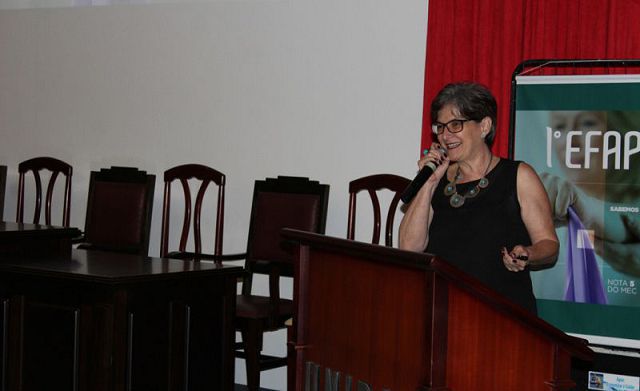 Em sua palestra, a fisioterapeuta ressaltou a importância da prática colaborativa. “Em nenhum local trabalhamos sozinhos. É primordial que os alunos desenvolvam competências colaborativas, desde a graduação, para que aprendam a trabalhar em equipe no mercado de trabalho”, explicou Ana Maria Chagas.