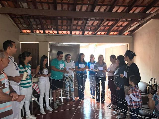 sob supervisão da professora Joana D'arc, uma oficina de dinâmica em grupo com