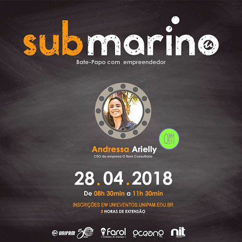 A Farol Incubadora do Centro Universitário de Patos de Minas (UNIPAM) realizará no dia 28 de abril (sábado), a partir das 8h30, no Centro de Empreendedorismo e Aceleração de Negócios (OceanO), mais uma edição do evento “Submarino”.