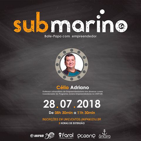 A Farol Incubadora, o Centro de Empreendedorismo e Aceleração de Negócios (OceanO) e o Núcleo de Inovação Tecnológica do Centro Universitário de Patos de Minas (UNIPAM) promoverá neste sábado (28), na sala invertida (202) do bloco Alpha, mais uma edição do evento “Submarino”.