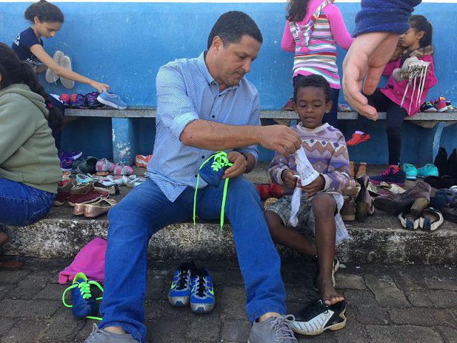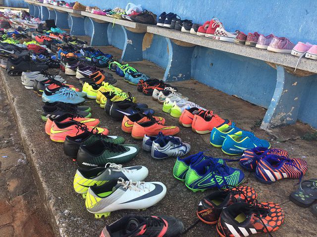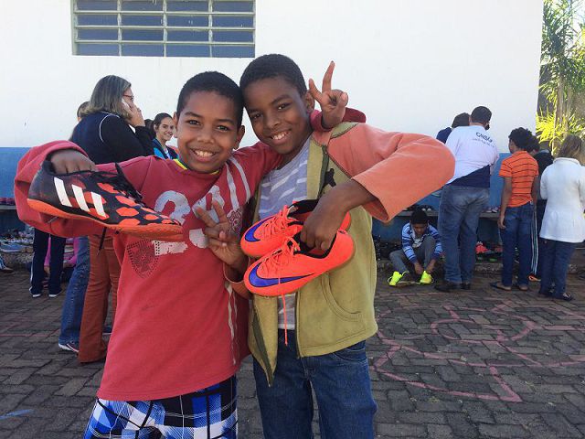O aluno do Programa Viva Cristavo, Gabriel Rodrigues do Amaral, escolheu uma chuteira. “Vou usar pra jogar futebol”, contou animado. Além de tênis e chuteiras foram arrecadados chinelos, sandálias, botinas, botas e até agasalhos.