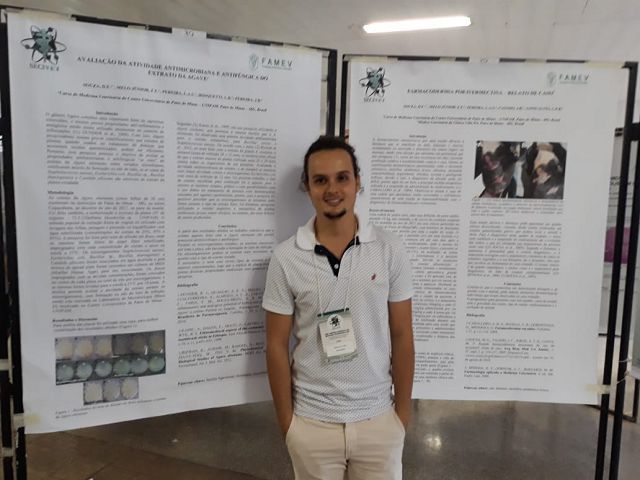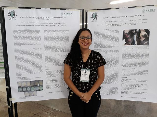 Na oportunidade, a aluna Driele Francesca apresentou os trabalhos “Avaliação da Atividade Antimicrobiana e Antifúngica do Extrato da Agave”, “Casuística das Principais Afecções Clínicas em Gatos Domésticos no Centro Clínico Veterinário do município de Patos de Minas, MG” e “Farmacodermia por Ivermectina – relato de caso”.