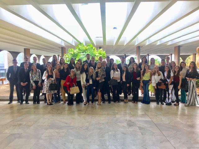 Ao todo, 43 alunos participaram da viagem. Na oportunidade eles visitaram o Superior Tribunal de Justiça (STJ), o Tribunal Superior Eleitoral (TSE), bem como o Supremo Tribunal Federal (STF), inclusive com participação em sessão de julgamento plenário. Durante a visita à Corte Suprema (STF), os alunos foram recebidos pelo Presidente Ministro Dias Toffoli e pelo Ministro Luís Roberto Barroso para um bate-papo sobre o judiciário e o país. Além dos Tribunais, foram visitados o Congresso Nacional, o Palácio do Itamaraty, o Ministério da Justiça e o Conselho Federal da Ordem dos Advogados do Brasil. Por fim, os estudantes fizeram uma visita ao escritório de advocacia do renomado advogado criminalista, Antônio Carlos de Almeida Castro (Kakay).