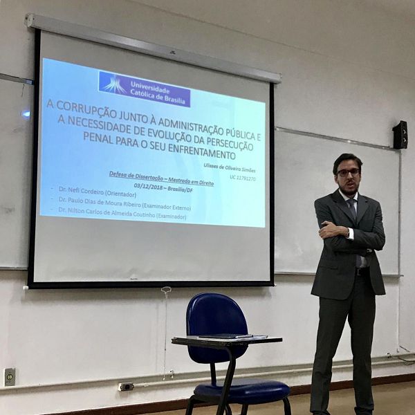 Ulisses de Oliveira Simões, professor do Centro Universitário de Patos de Minas (UNIPAM), concluiu no dia 3 de dezembro, o Mestrado em Direito intitulado “A Corrupção na Administração Pública e a Necessidade de Evolução da Persecução Penal para o seu Enfrentamento”, no campus da Universidade Católica de Brasília.