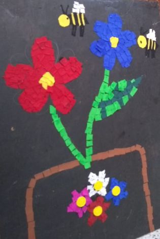 Nesse primeiro momento, foram desenvolvidos trabalhos voltados para a cerâmica, colagens, mosaicos (com tecidos, com tampinhas e com papeis), pinturas com pigmentos retirados da natureza como terra, flores e plantas diversas.