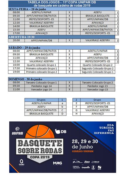 Será realizada nos dias 28, 29 e 30 de junho, no Ginásio I do Centro Universitário de Patos de Minas (UNIPAM), a “11ª Copa UNIPAM DB de Basquete em Cadeiras de Rodas”.