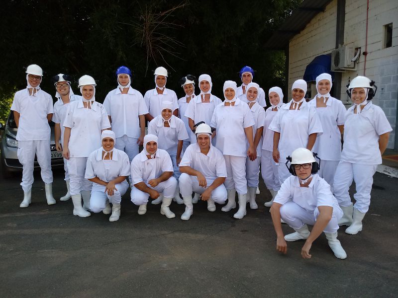 Na oportunidade, os alunos conheceram as instalações e os equipamentos da empresa, acompanharam o fluxograma do abate de suínos, desde sua insensibilização (procedimento realizado de acordo com a legislação e visando o bem estar animal), até a inspeção sanitária dos órgãos e carcaças pelo Serviço de Inspeção Federal (SIF).