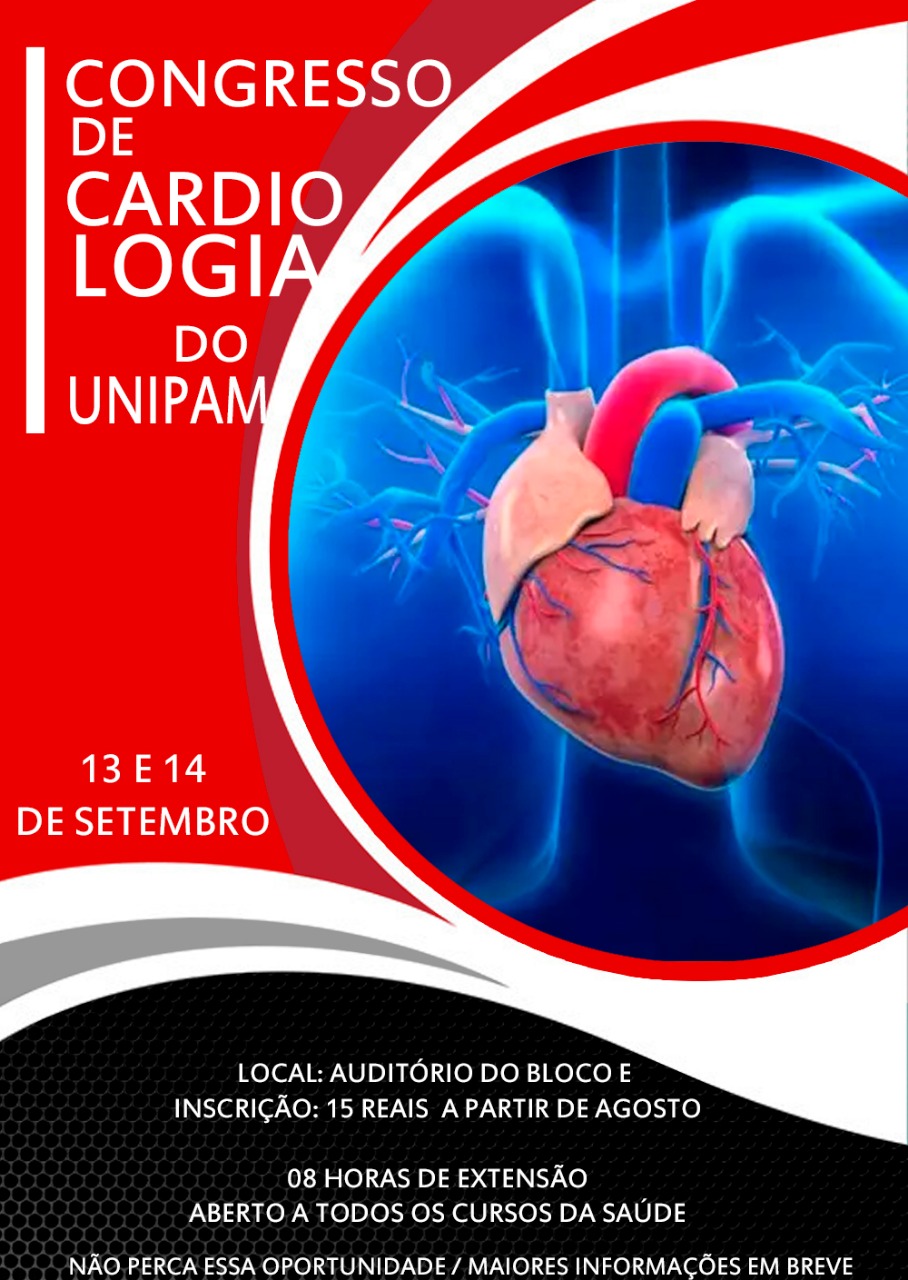 Alunos do curso de Medicina do Centro Universitário de Patos de Minas (UNIPAM) promoverão nos dias 13 e 14 de setembro, no auditório do bloco E, o Congresso de Cardiologia do UNIPAM.