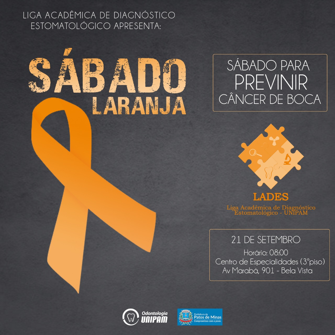 A Liga Acadêmica de Diagnóstico Estomatológico (LADES) do curso de Odontologia do Centro Universitário de Patos de Minas (UNIPAM) em parceria com a Prefeitura Municipal promoverá amanhã (21), a partir das 8h, no Centro de Especialidades Odontológicas (CEO), o “Sábado Laranja”.