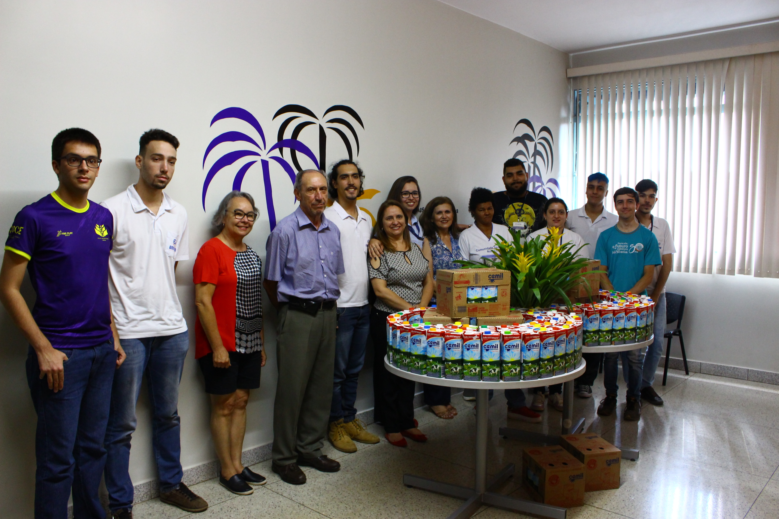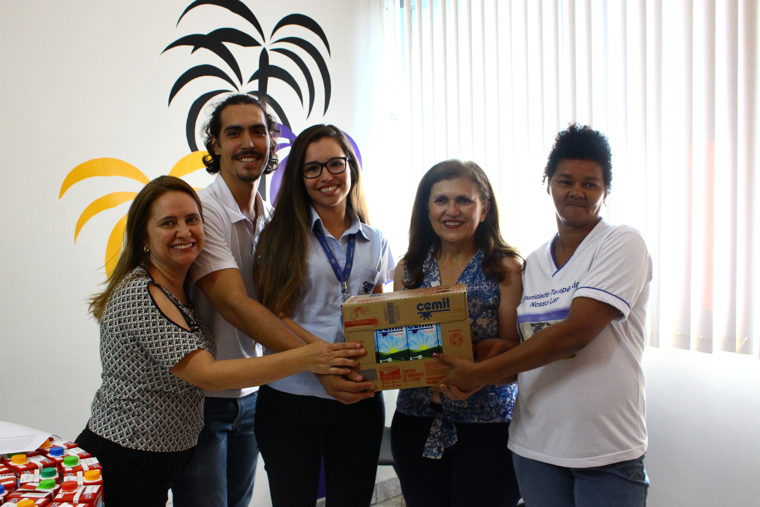 Os cursos de Jornalismo e de Publicidade e Propaganda do Centro Universitário de Patos de Minas (UNIPAM) doaram, no dia 24 de setembro, na Agência Experimental Crivo, 215 litros de leite Cemil para a “Comunidade Terapêutica Nosso Lar”, que atende 28 mulheres que estão em recuperação de dependência química e álcool.