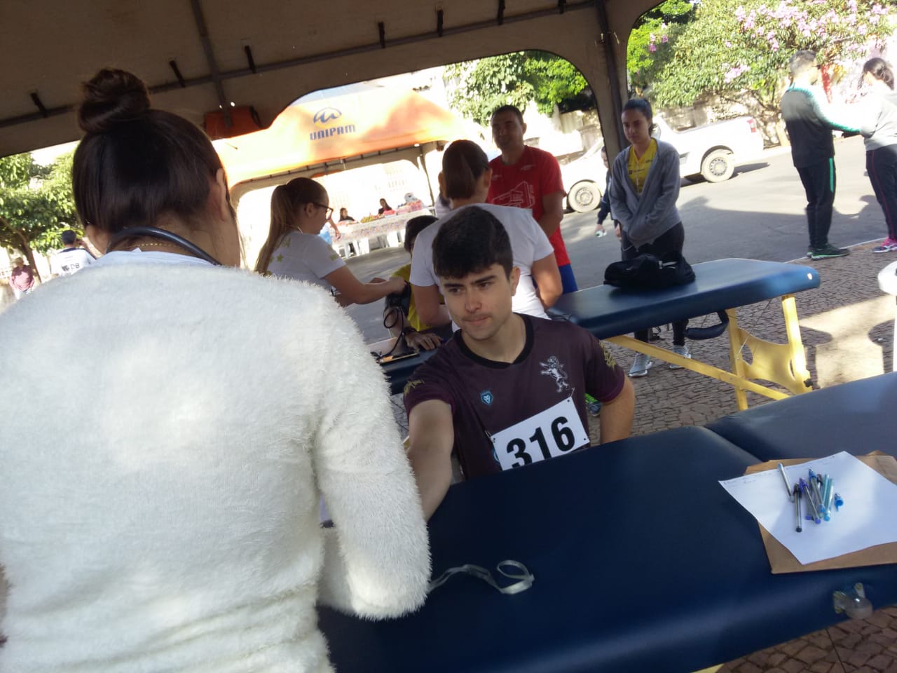 Na ocasião, as alunas verificaram os sinais vitais, dos participantes, antes e após a corrida. Além disso, realizaram também, a atividade “toque terapêutico”.