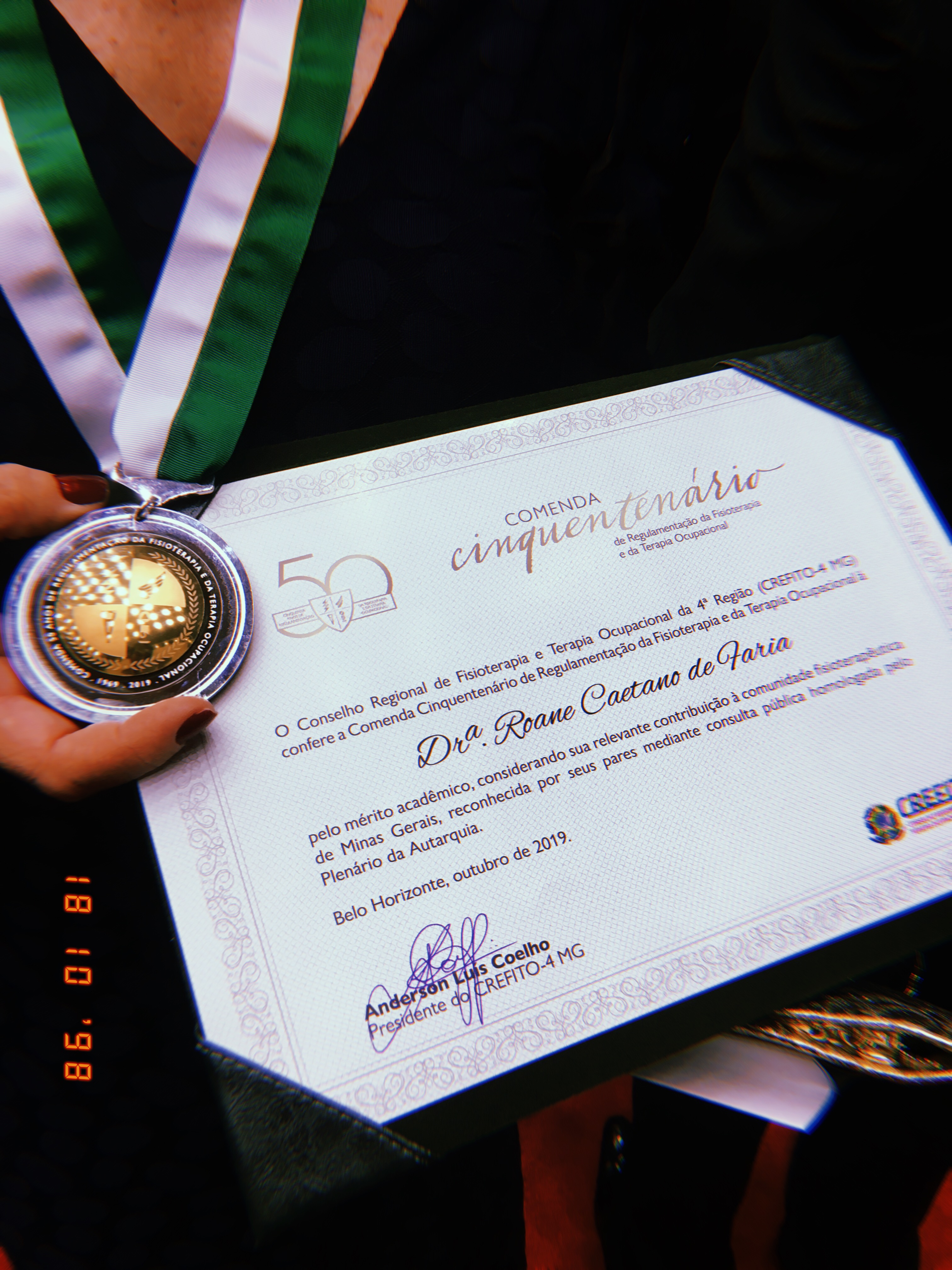 A comenda é concedida a profissionais e a personalidades em reconhecimento às relevantes trajetórias e serviços prestados em prol da valorização e da consolidação das profissões em Minas Gerais e no país. A escolha do nome da professora Roane Caetano se deu em reconhecimento pela contribuição à comunidade fisioterapêutica, pelo Mérito Acadêmico, e ratificada pelo Plenário do Conselho Regional de Fisioterapia e Terapia Ocupacional do Estado de Minas Gerais – 4ª Região (CREFITO-4).