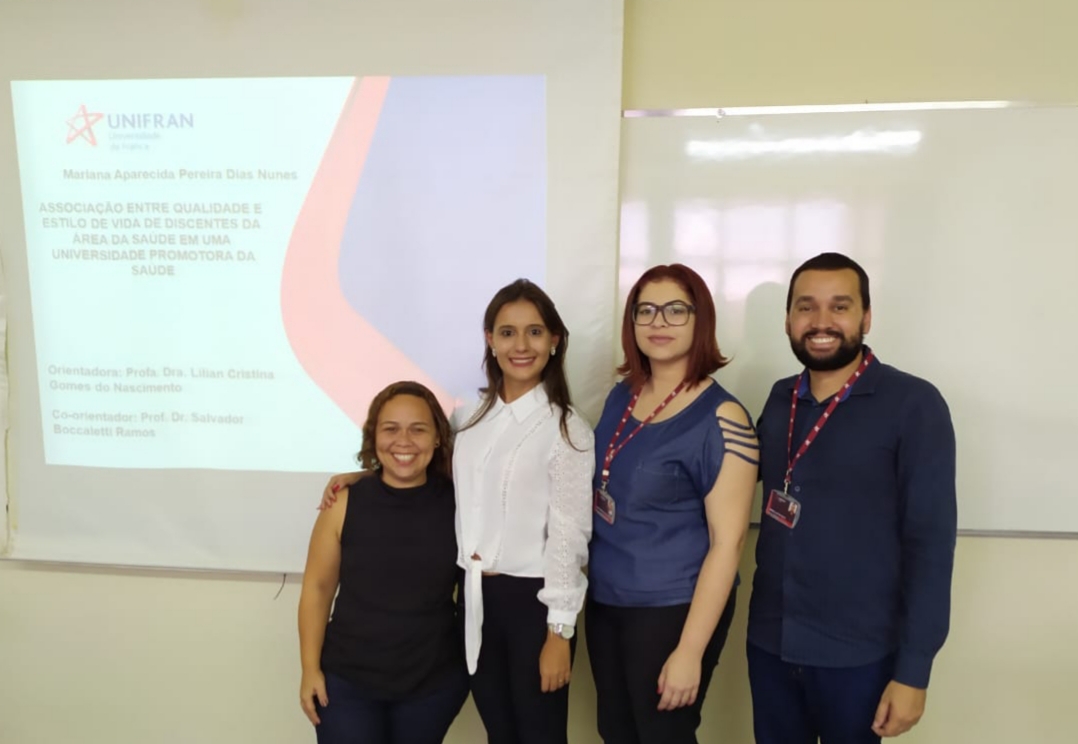 A banca avaliadora da ex-aluna foi composta pelos professores Jorge Luiz da Silva, da UNIFRAN; Mônica Cecília Santana Pereira, da Faculdade de Almenara (ALFA); pelo coorientador do projeto, Salvador Boccaletti Ramos; e pela orientadora do trabalho, Lilian Cristina Gomes do Nascimento.