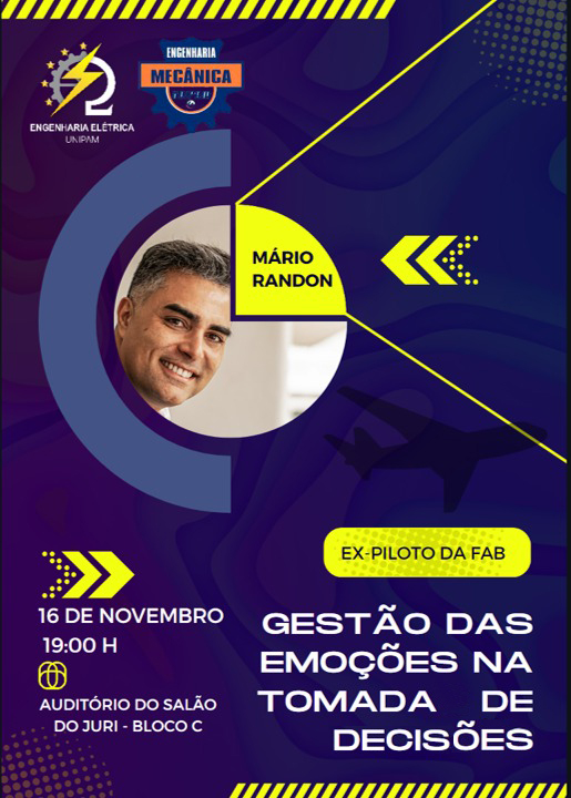 O Centro Universitário de Patos de Minas (UNIPAM) promoverá no dia 16 de novembro (quarta-feira), às 19h, no Salão do Júri, uma palestra com o ex-piloto da Força Aérea Brasileira (FAB), Mário Randon.