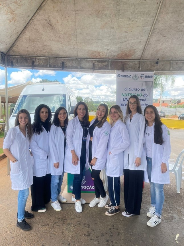 Alunas do 1º e do 3º período de Nutrição do Centro Universitário de Patos de Minas (UNIPAM) acompanhadas pela coordenadora do curso, professora Kelen Cristina Estavanate de Castro, participaram no dia 21 de março (terça-feira), do evento “Prefeitura no seu Bairro”, realizado no bairro Quebec.