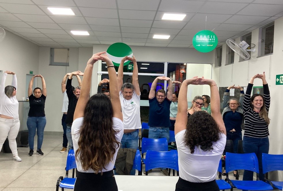 Na oportunidade foram apresentados, aos colaboradores, a importância da coluna vertebral, as maneiras corretas de se sentar, os alongamentos para a melhora do trabalho, além também, de uma brincadeira educativa para fortalecer o aprendizado.