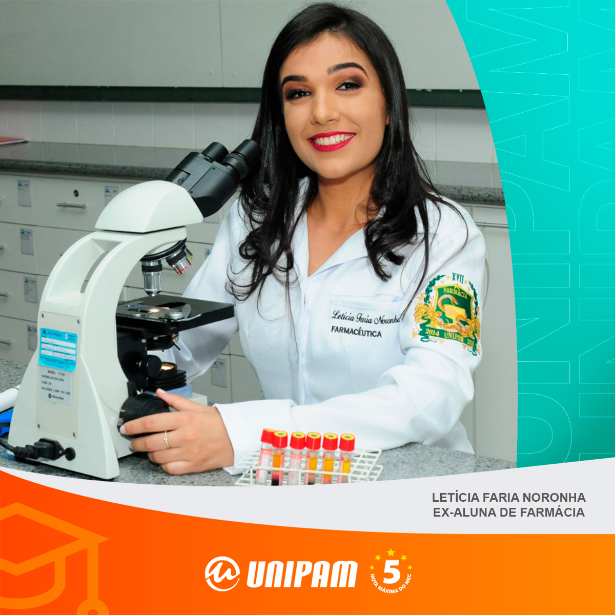Durante a graduação em Farmácia, Letícia estagiou no Laboratório de Microbiologia do UNIPAM, onde também realizou PIBIC, e se formou no ano de 2018, recebendo o prêmio de aluna destaque da turma.