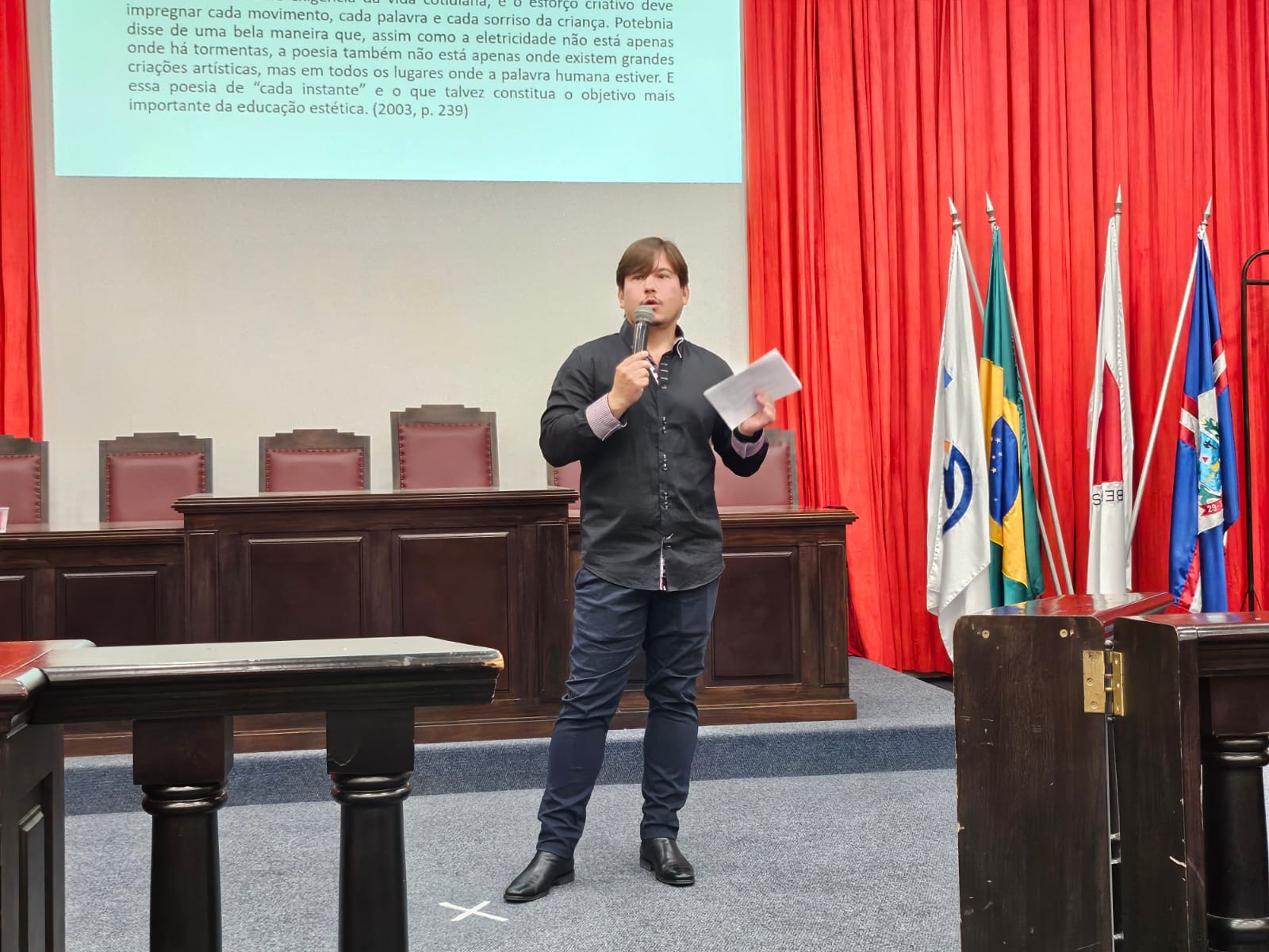 O palestrante convidado foi o professor Hamlet Fernandez, que ministrou sobre o tema “Arte e Educação”. Na oportunidade, ele abordou sobre a arte como ferramenta de aprendizagem e sua potencialidade para ampliação da visão do mundo, transformando vivências em experiências e conhecimento.