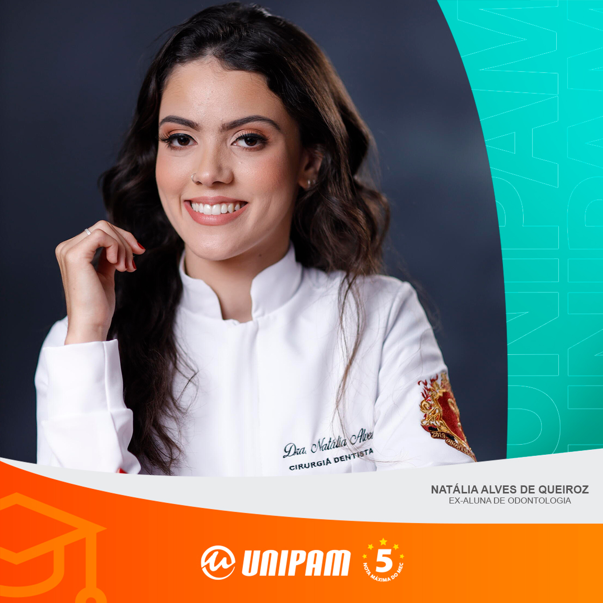 Natália Alves de Queiroz, ex-aluna do curso de Odontologia do Centro Universitário de Patos de Minas (UNIPAM), foi aprovada no dia 27 de fevereiro (terça-feira), no Programa de Residência em Área Profissional da Saúde, da Faculdade de Odontologia de Ribeirão Preto da Universidade de São Paulo (FORP - USP). As atividades foram iniciadas no dia 1º de março (sexta-feira).