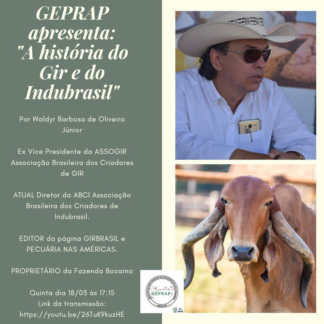 O Grupo de Estudos e Pesquisa de Ruminantes do Alto Paranaíba (GEPRAP), do Centro Universitário de Patos de Minas (UNIPAM), promoverá nesta quinta-feira (18), às 17h15, no YouTube, uma palestra intitulada “A História do Gir e Indubrasil".