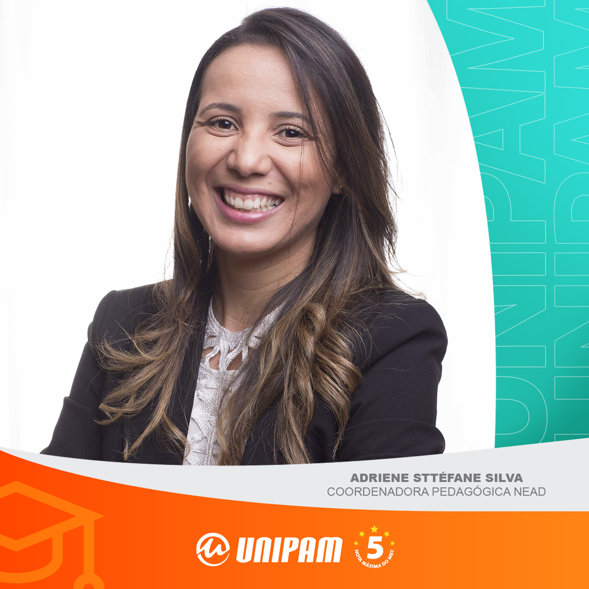 A professora Adriene Sttéfane é doutora em Educação e mestra em Tecnologias, Comunicação e Educação pela Universidade Federal de Uberlândia (UFU). Possui especialização em Gestão Escolar: Inspeção, Orientação e Supervisão Pedagógica, pelo UNIPAM. É graduada em História e em Pedagogia. Atua como Coordenadora Pedagógica no Núcleo de Educação a Distância (NEAD), do UNIPAM.