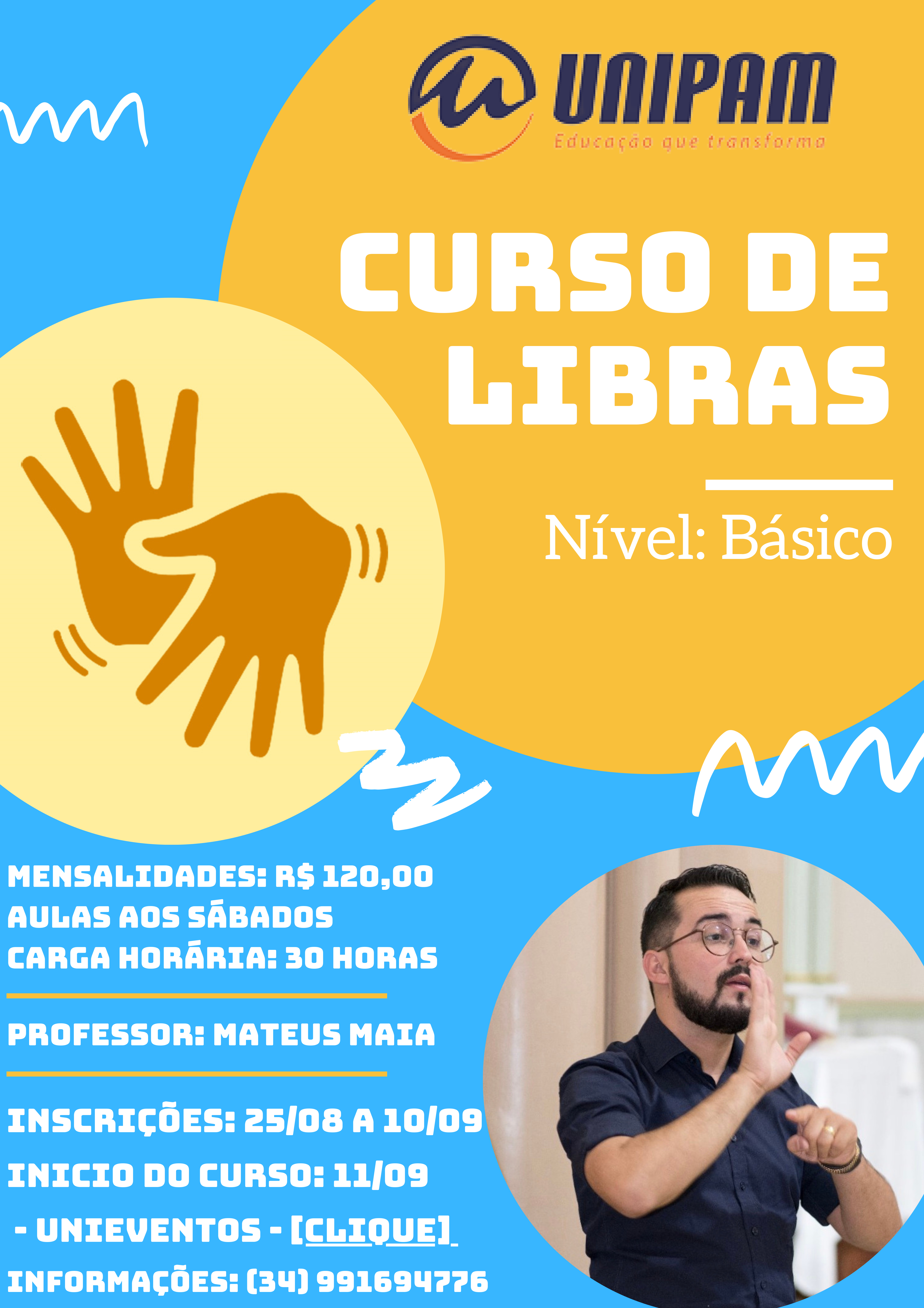 O Centro Universitário de Patos de Minas (UNIPAM) promoverá, de setembro a dezembro, o curso “Libras Básico”. Os encontros ocorrerão aos sábados. O participante poderá escolher entre um dos horários oferecidos: das 8h às 10h30 ou das 13h às 15h30.