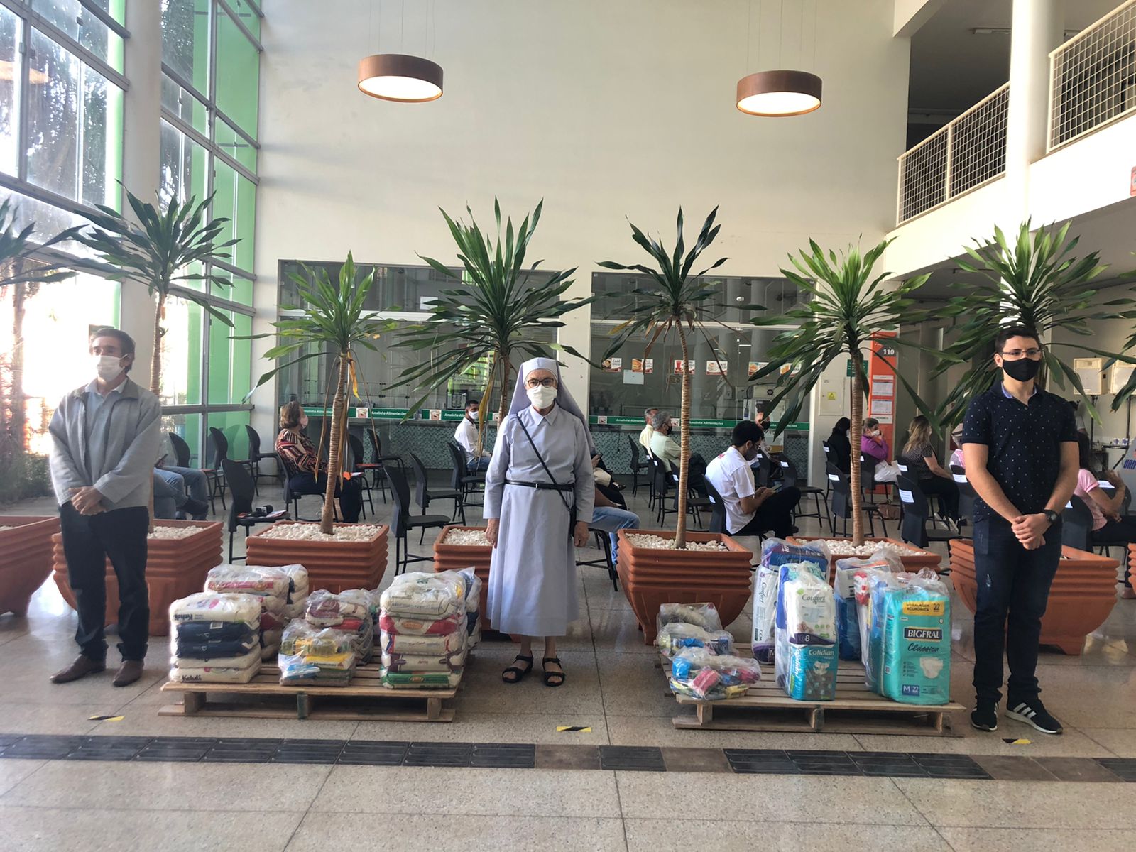 A Fundação Educacional de Patos de Minas (FEPAM) e o Centro Universitário de Patos de Minas (UNIPAM) realizaram nesta quarta-feira (1º), no hall do Restaurante Universitário, a solenidade de entrega de cerca de duas toneladas de alimentos, de itens de higiene pessoal e de fraldas geriátricas.