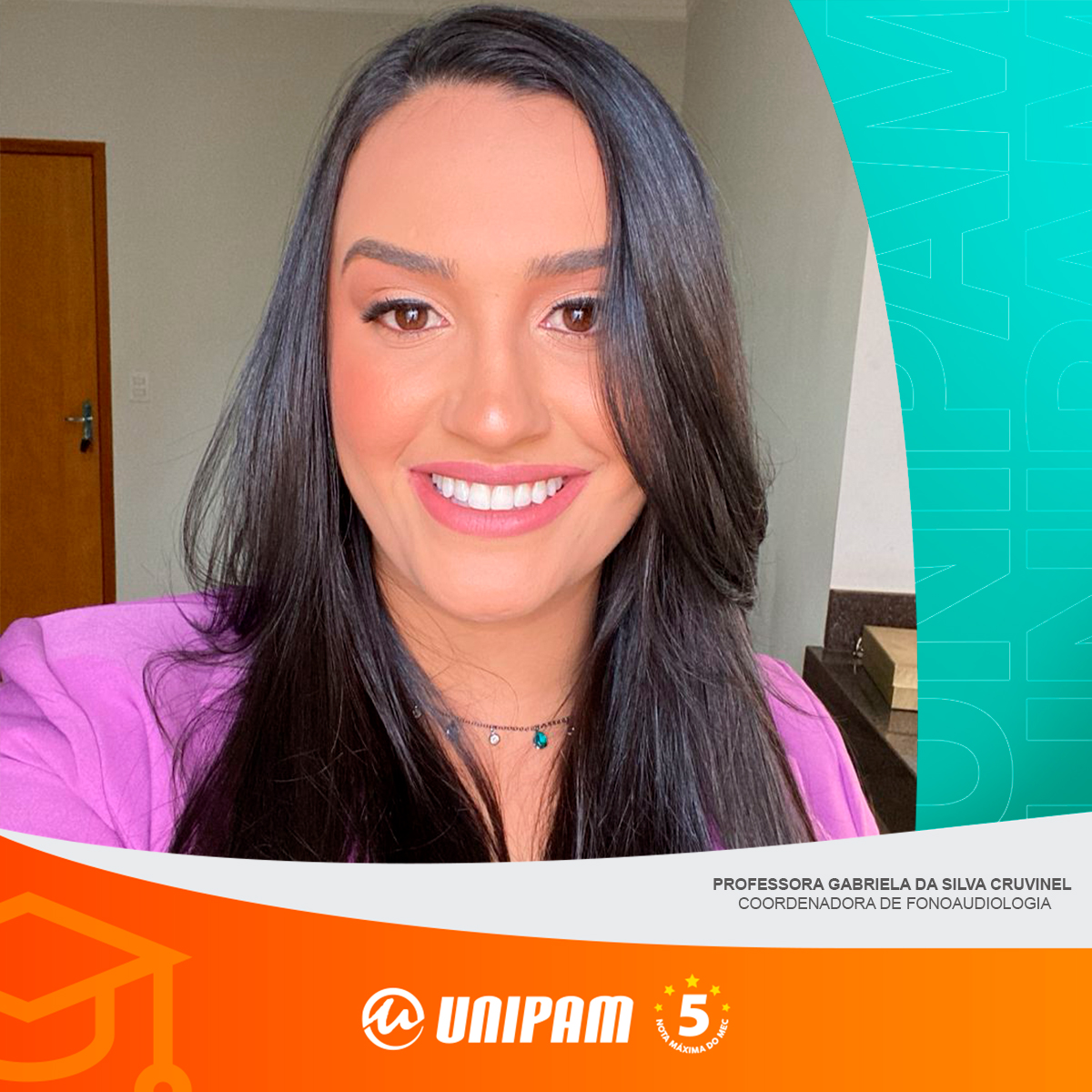 A coordenadora do curso de Fonoaudiologia do Centro Universitário de Patos de Minas (UNIPAM), professora Gabriela da Silva Cruvinel, foi aprovada no Programa de Pós-Graduação em Ciências Fonoaudiológicas da Faculdade de Medicina, da Universidade Federal de Minas Gerais (UFMG). O resultado foi divulgado no dia 12 de dezembro (sexta-feira).