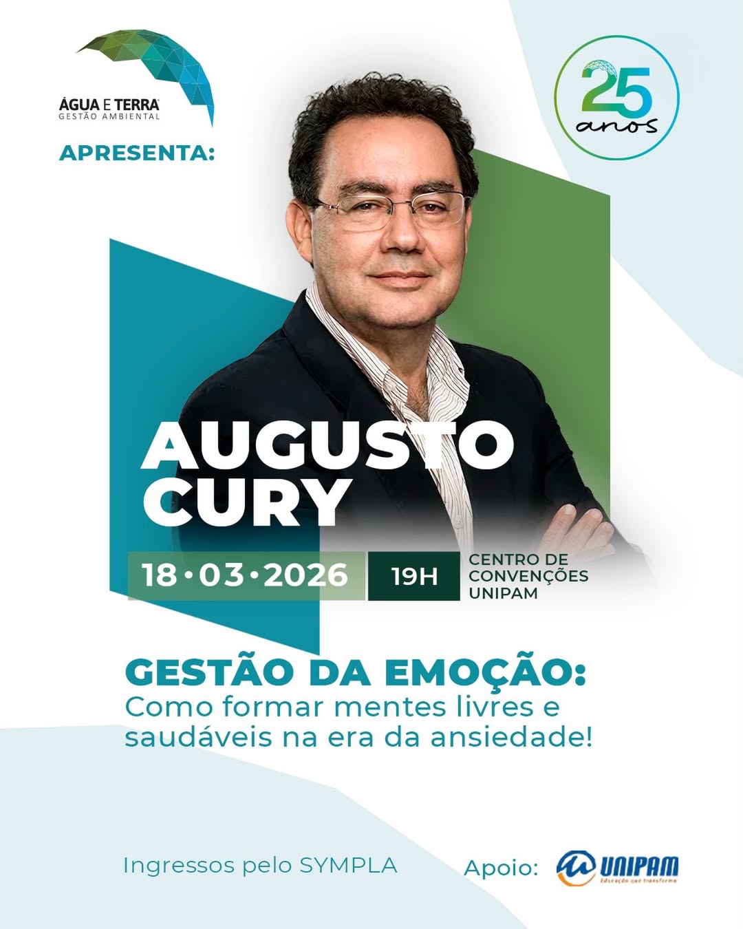 No dia 18 de março (quarta-feira), às 19h, no Centro de Convenções e Eventos (CCE) do Centro Universitário de Patos de Minas (UNIPAM), um dos maiores especialistas em inteligência emocional do Brasil, o médico psiquiatra Dr. Augusto Cury, ministrará a palestra “Gestão da Emoção: Como Formar Mentes Livres e Saudáveis na Era da Ansiedade!”.