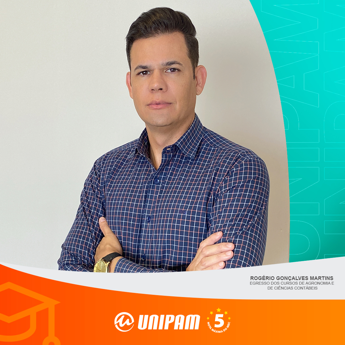 O egresso do Centro Universitário de Patos de Minas (UNIPAM), Rogério Gonçalves Martins, concluiu o mestrado em Ciências Contábeis e Administração pela FUCAPE Business School, no Distrito Federal (DF). Formado em Agronomia pelo UNIPAM em 2025 e em Ciências Contábeis em 2006, ele cursou o mestrado de forma concomitante à graduação em Agronomia.