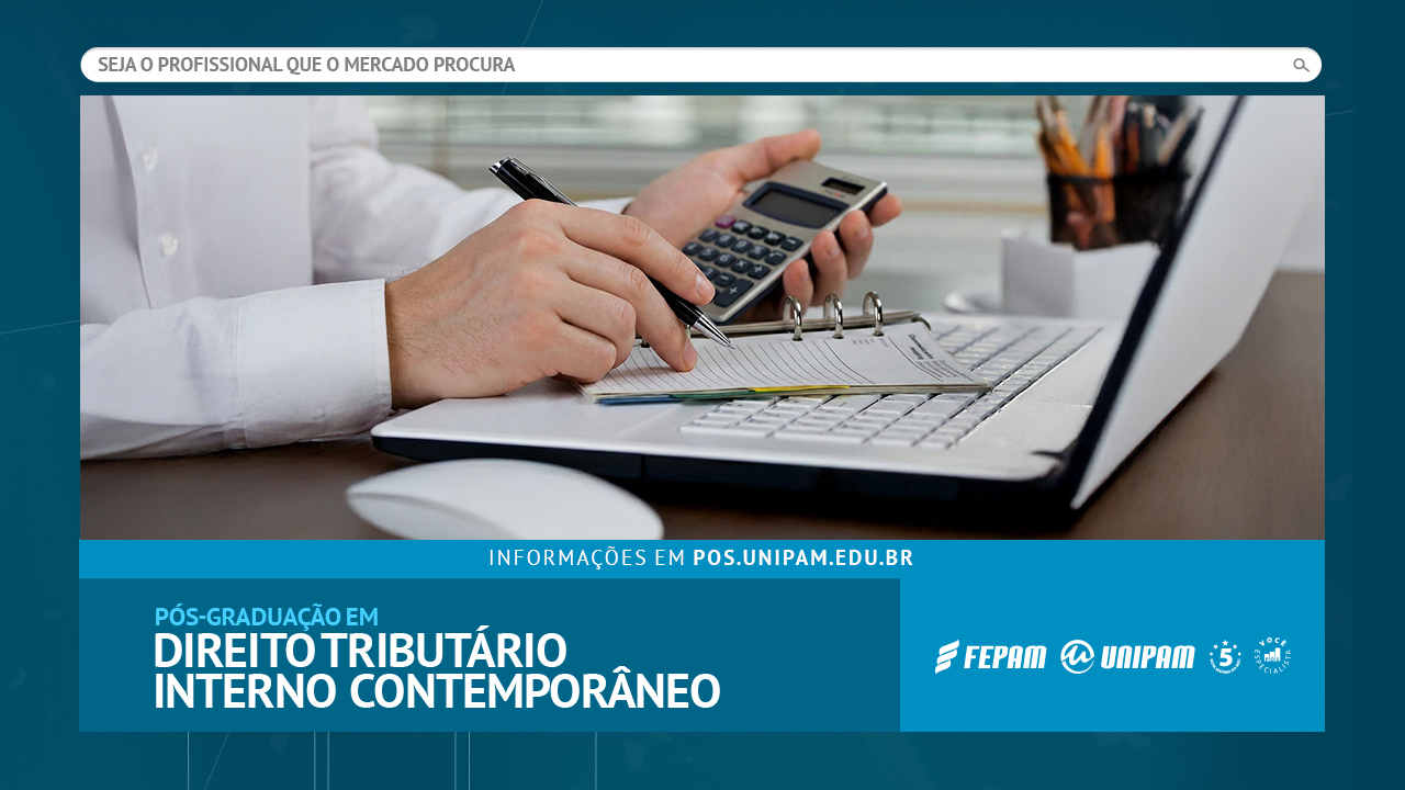 O Centro Universitário de Patos de Minas (UNIPAM) está com matrículas abertas para o curso de “Pós-Graduação em Direito Tributário Interno Contemporâneo”. A especialização é voltada a advogados, a administradores, a contadores, entre outros profissionais.