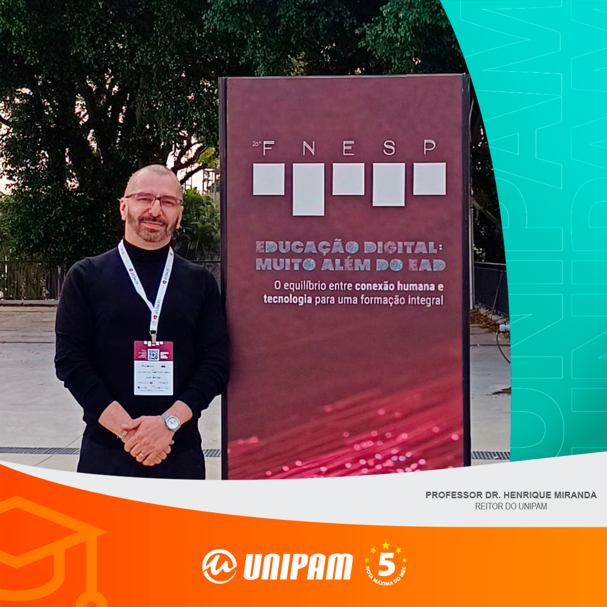 O Reitor do Centro Universitário de Patos de Minas (UNIPAM), professor Dr. Henrique Carivaldo de Miranda, participou, nos dias 18 e 19 de setembro, em São Paulo (SP), do 26º Fórum de Ensino Superior (FNESP).