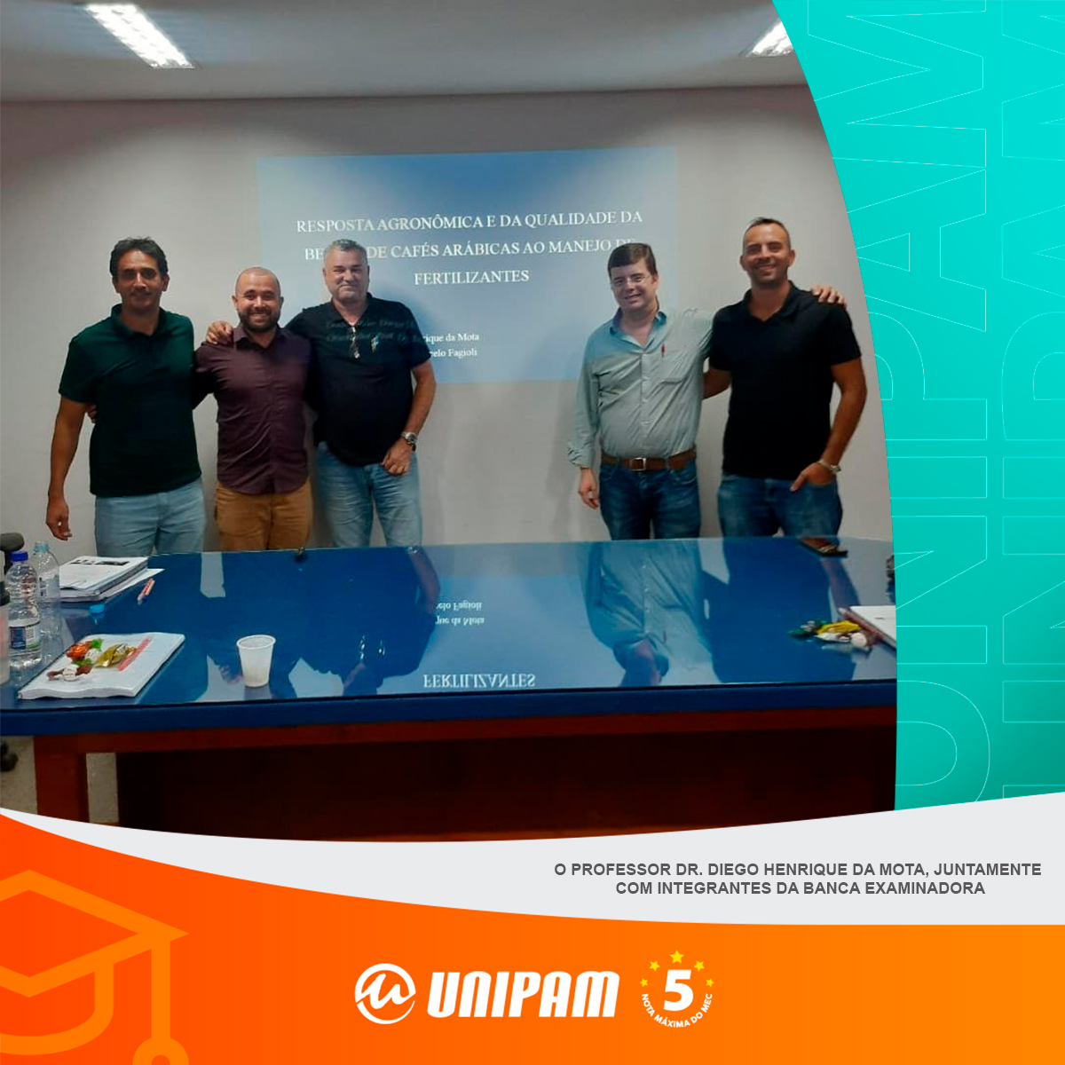 O professor do curso de Agronomia e dos cursos de Engenharia do Centro Universitário de Patos de Minas (UNIPAM), Dr. Diego Henrique da Mota, concluiu, recentemente, o Programa de Doutorado em Agronomia, pela Universidade de Brasília (UnB).