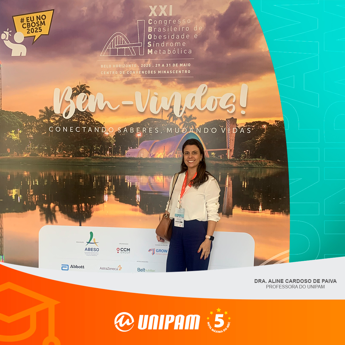Dra. Aline Cardoso de Paiva, professora dos cursos de Medicina e de Nutrição do Centro Universitário de Patos de Minas (UNIPAM), participou, recentemente, do “XXI Congresso Brasileiro de Obesidade e Síndrome Metabólica (CBOSM)”. Esse foi realizado pela Associação Brasileira para Estudo da Obesidade e Síndrome Metabólica, no Centro de Convenções Minascentro, em Belo Horizonte (MG).