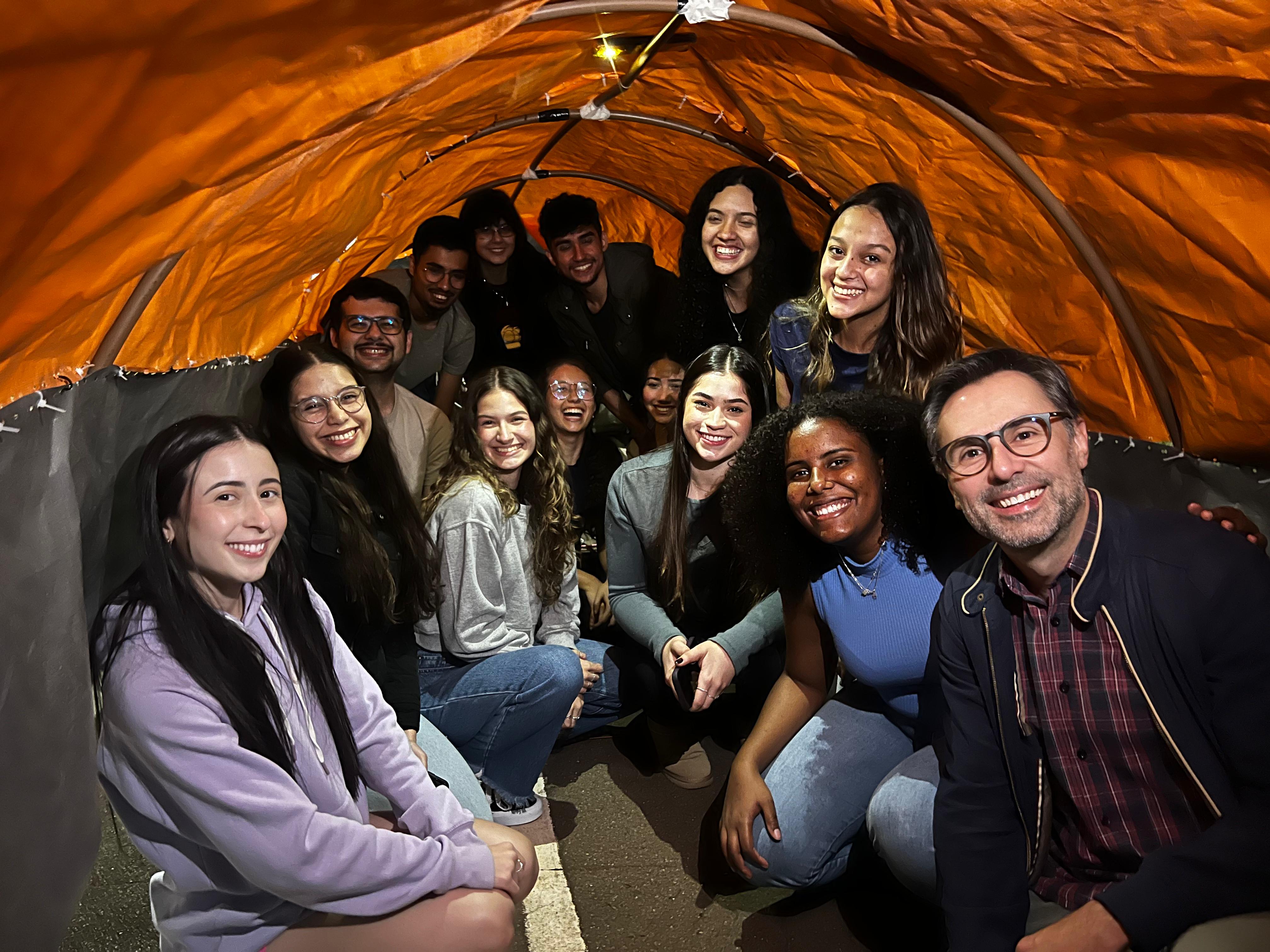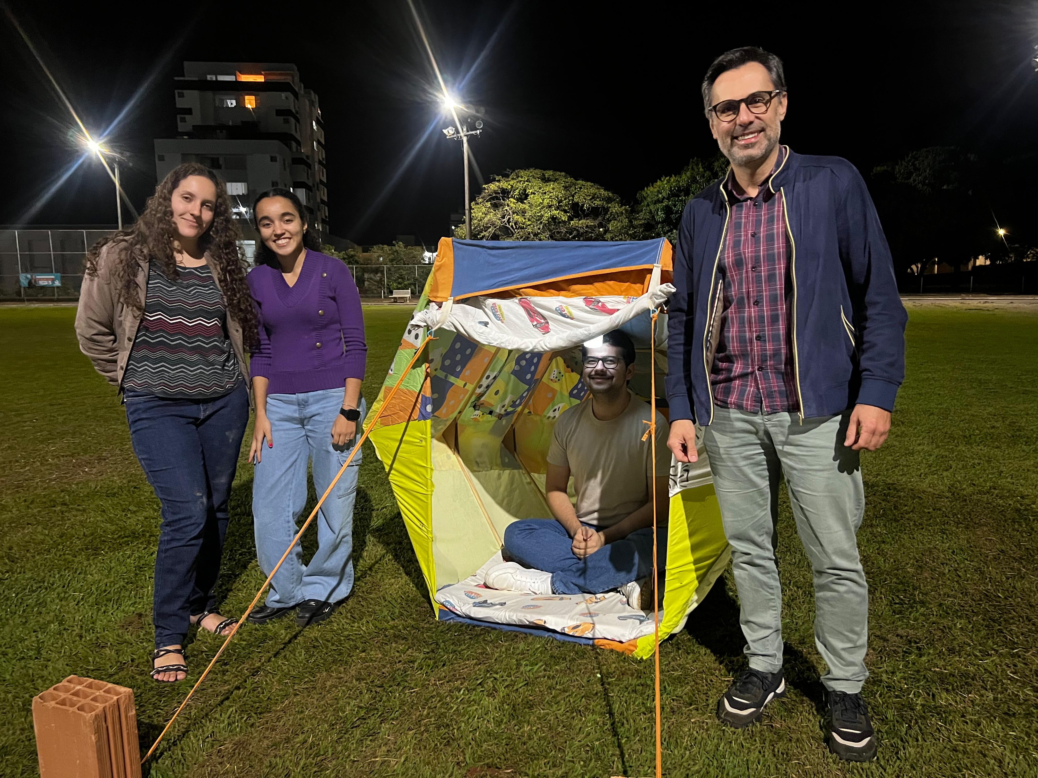 Antes da construção dos abrigos, os grupos realizaram pesquisas, testes de materiais e confecção de maquetes, o que possibilitou uma maior compreensão dos desafios da proposta e a elaboração de soluções técnicas coerentes com a realidade apresentada. Entre os destaques dos projetos desenvolvidos estão abrigos com estrutura dobrável, que podem ser facilmente montados e transportados, espaços pensados para o descanso com o uso de redes e protótipos que incluem itens básicos como colchonetes e lanternas.