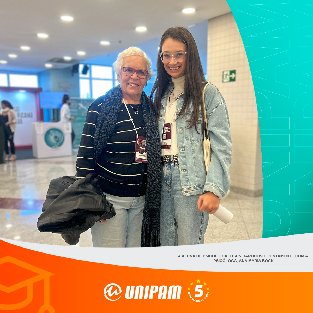 Durante a sua participação, Thaís Cardoso teve a oportunidade de conhecer a psicóloga Ana Maria Bock, referência nacional na área, ex-presidente do Conselho Federal de Psicologia e figura fundamental na consolidação da profissão no Brasil.