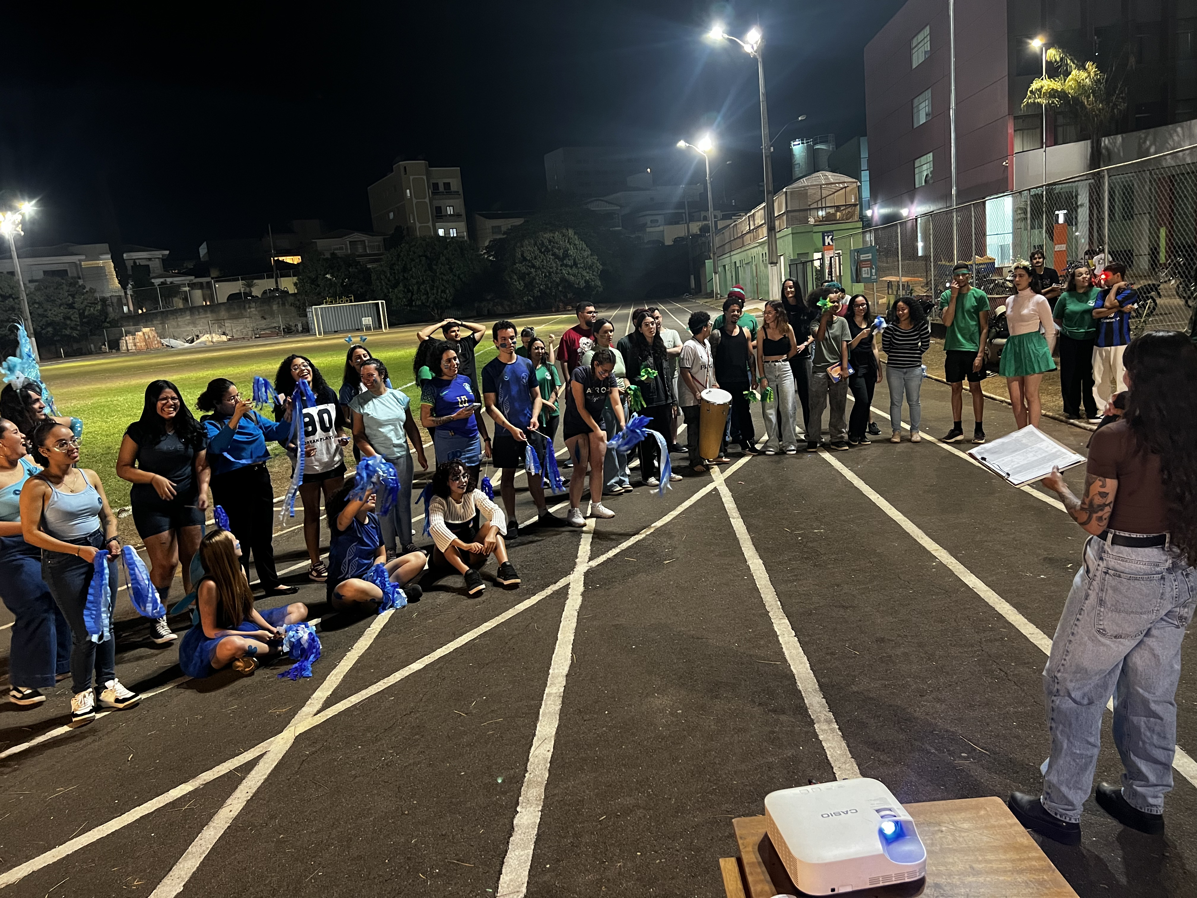 Divididos em duas equipes, verde e azul, os futuros biólogos se empenharam em cumprir diferentes tarefas valendo pontos. Entre elas, estavam: trazer mudas de orquídeas, encontrar pessoas com nomes de plantas e animais, usar adereços criativos na cabeça, produzir vídeos em homenagem à profissão, entre outras atividades que despertaram a criatividade e o espírito de equipe.